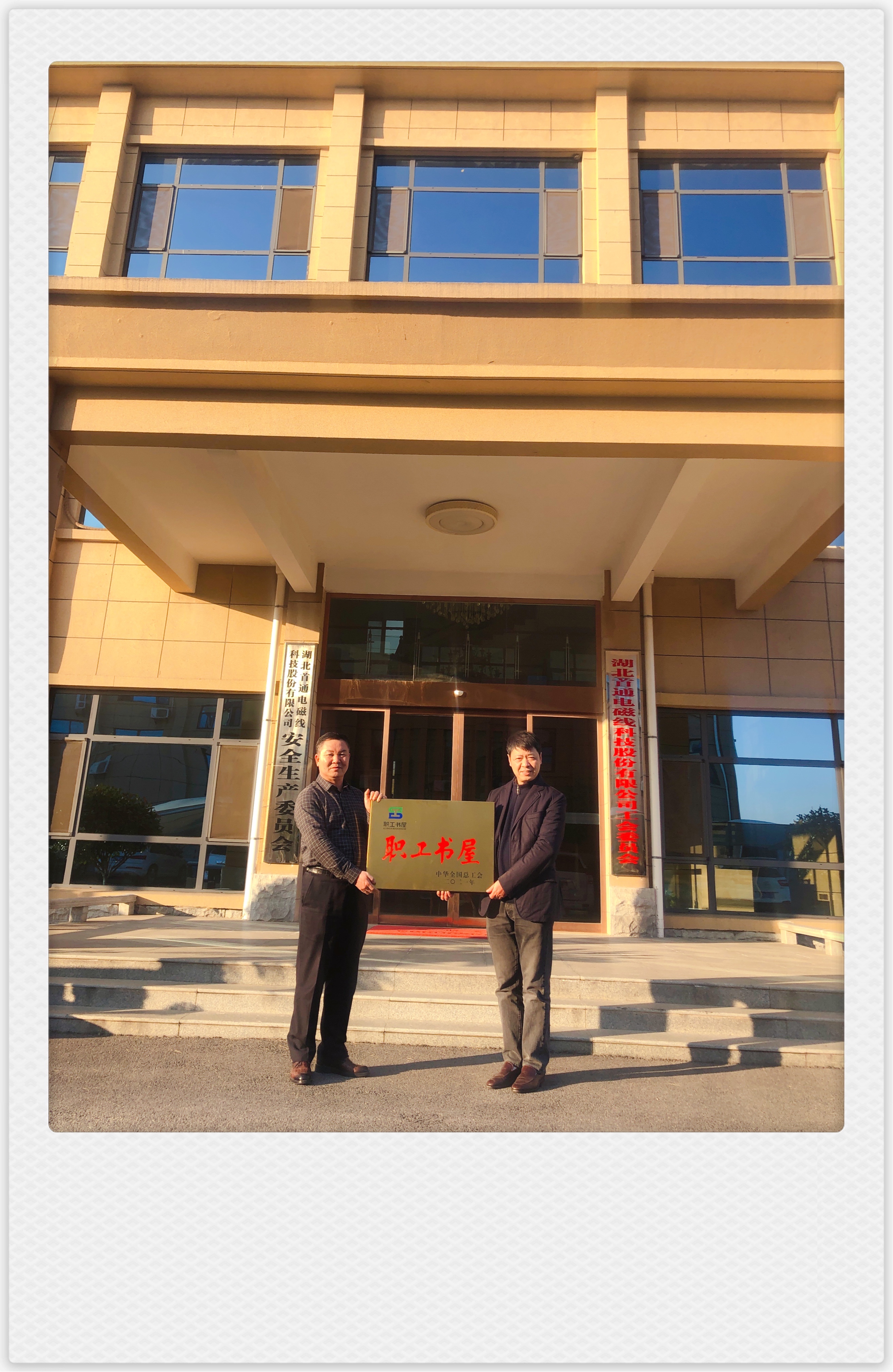 12月22日,受中華全國總工會委托,市總工會、縣總工會向湖北首通電磁線科技股份有限公司授予中華全國總工會“職工書屋”榮譽稱號。市總工會黨組成員、經(jīng)審委主任魏了參加授牌活動。