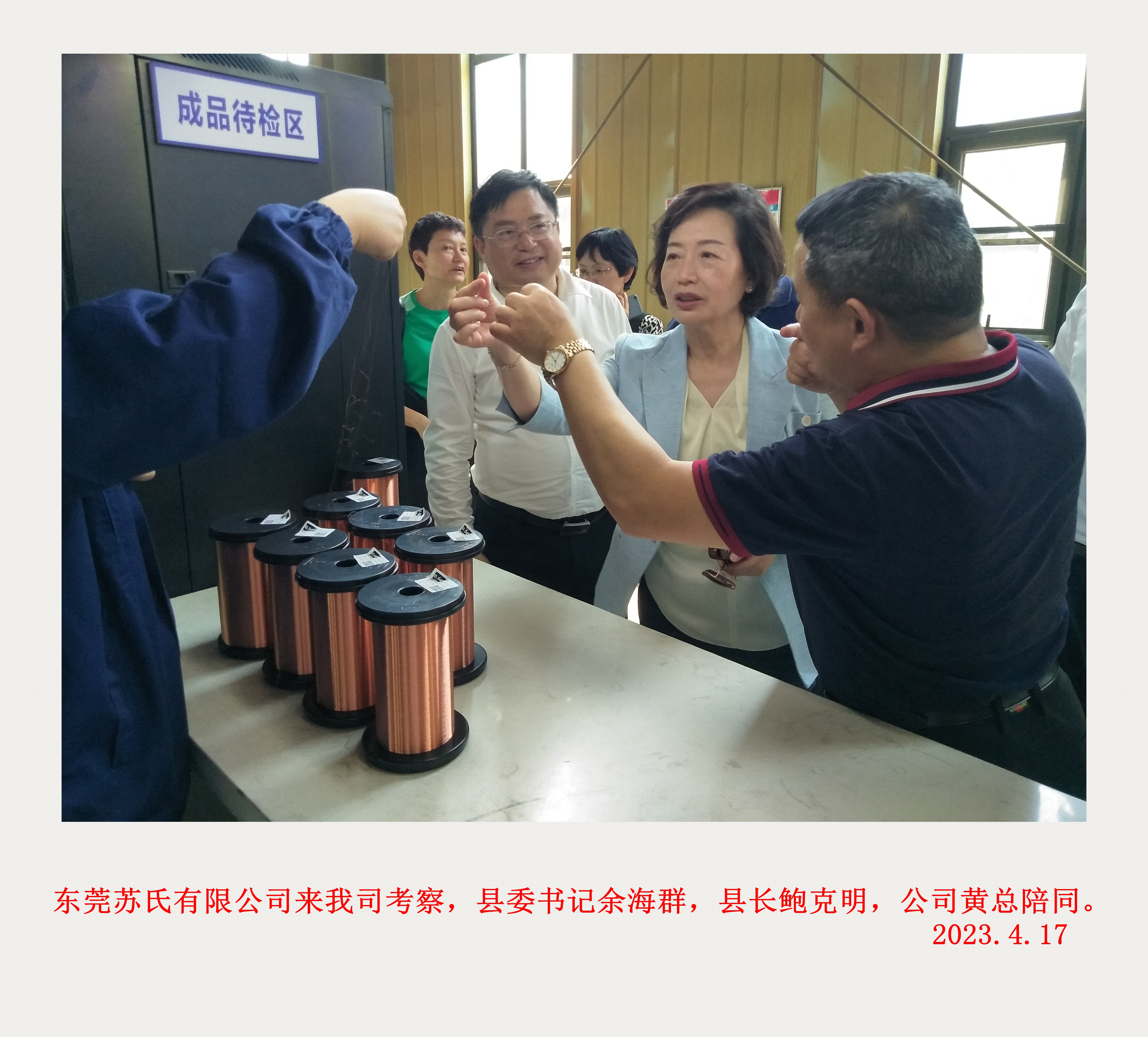 2023年4月17日  東莞蘇氏衛(wèi)生日用品有限公司考察團(tuán)來(lái)我司考察,孝感市委常委、組織部長(zhǎng)杭鶯,縣委書(shū)記余海群,縣委副書(shū)記、縣長(zhǎng)鮑克明,公司黃總陪同。