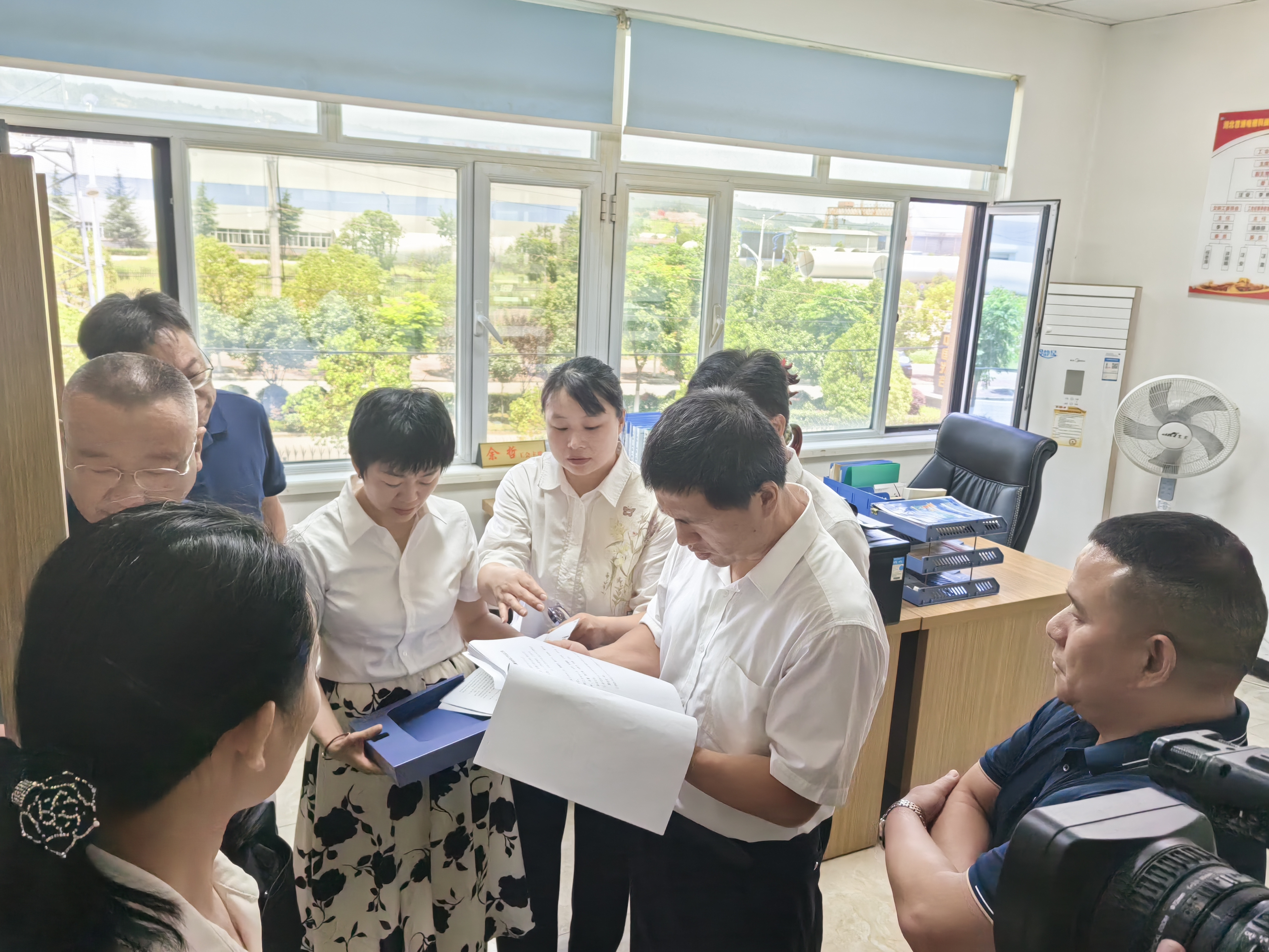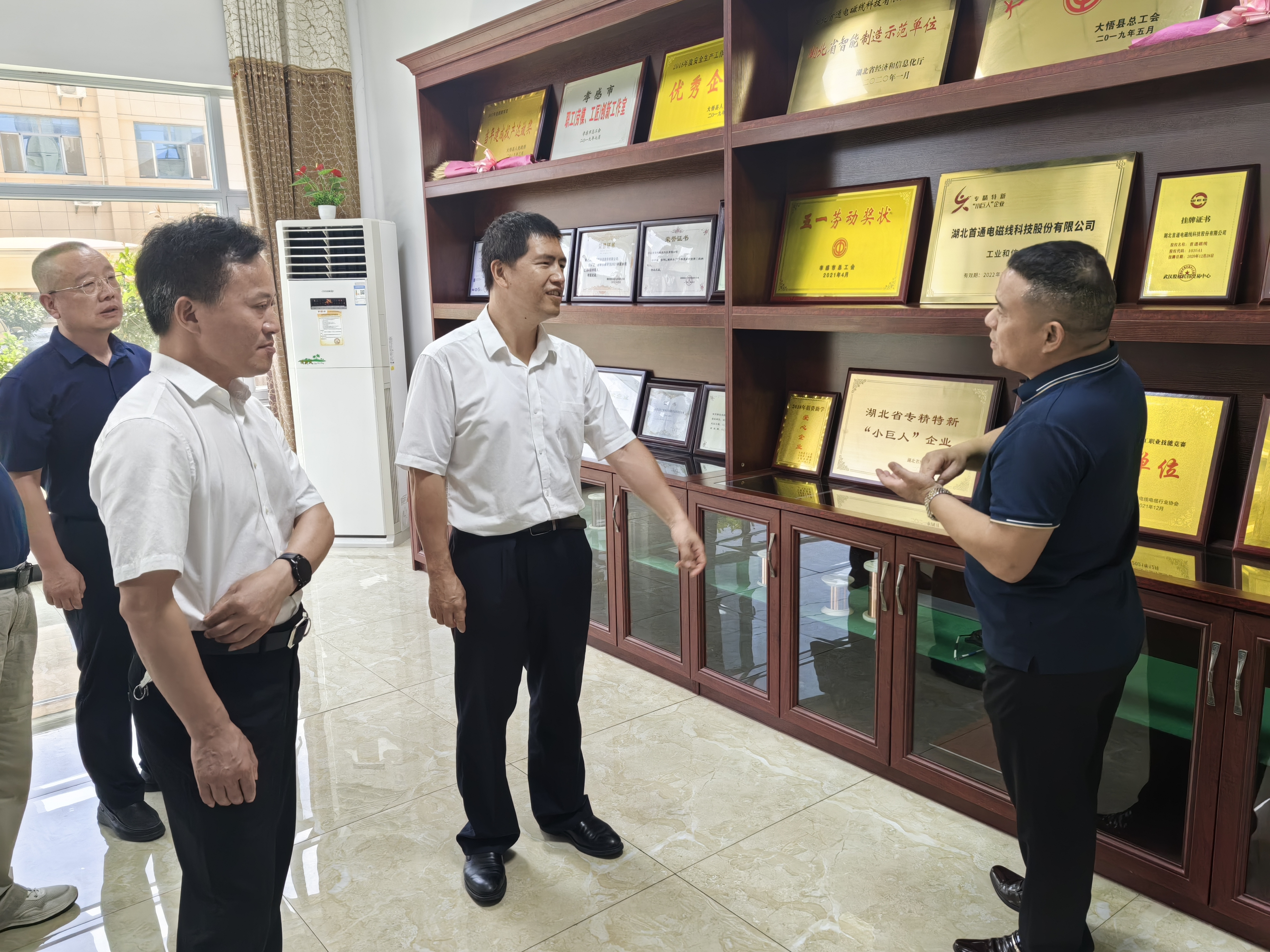 2023年7月5日上午 省、市總工會(huì)各級(jí)領(lǐng)導(dǎo)在大悟縣工會(huì)領(lǐng)導(dǎo)的陪同下,蒞臨我司開(kāi)展調(diào)研工作,公司黃總接待,省總工會(huì)主席胡甲文同志對(duì)我司工會(huì)開(kāi)展的集體協(xié)商工作夸獎(jiǎng)?wù)f:“做的很不錯(cuò),企業(yè)想職工之所想,把職工的權(quán)益放在實(shí)際行動(dòng)上,才能更穩(wěn)定更快速的發(fā)展。”并參觀了工會(huì)辦公室,公司宣傳欄,職工書屋、乒乓球、羽毛球、娛樂(lè)KTV室等。